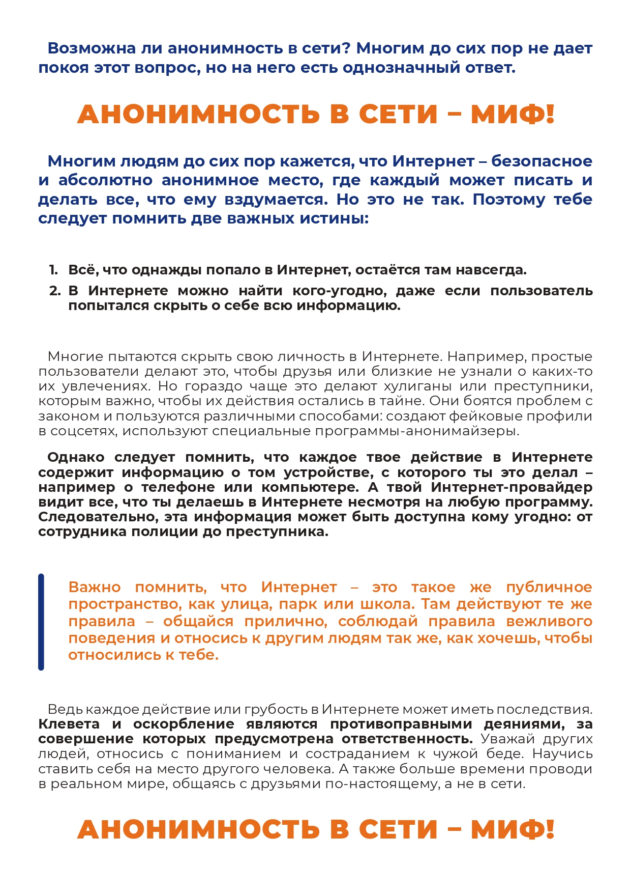 Не все пишут правду. Читаешь о себе неправду в Интернете - сообщи об этом своим родителям или опекунам;