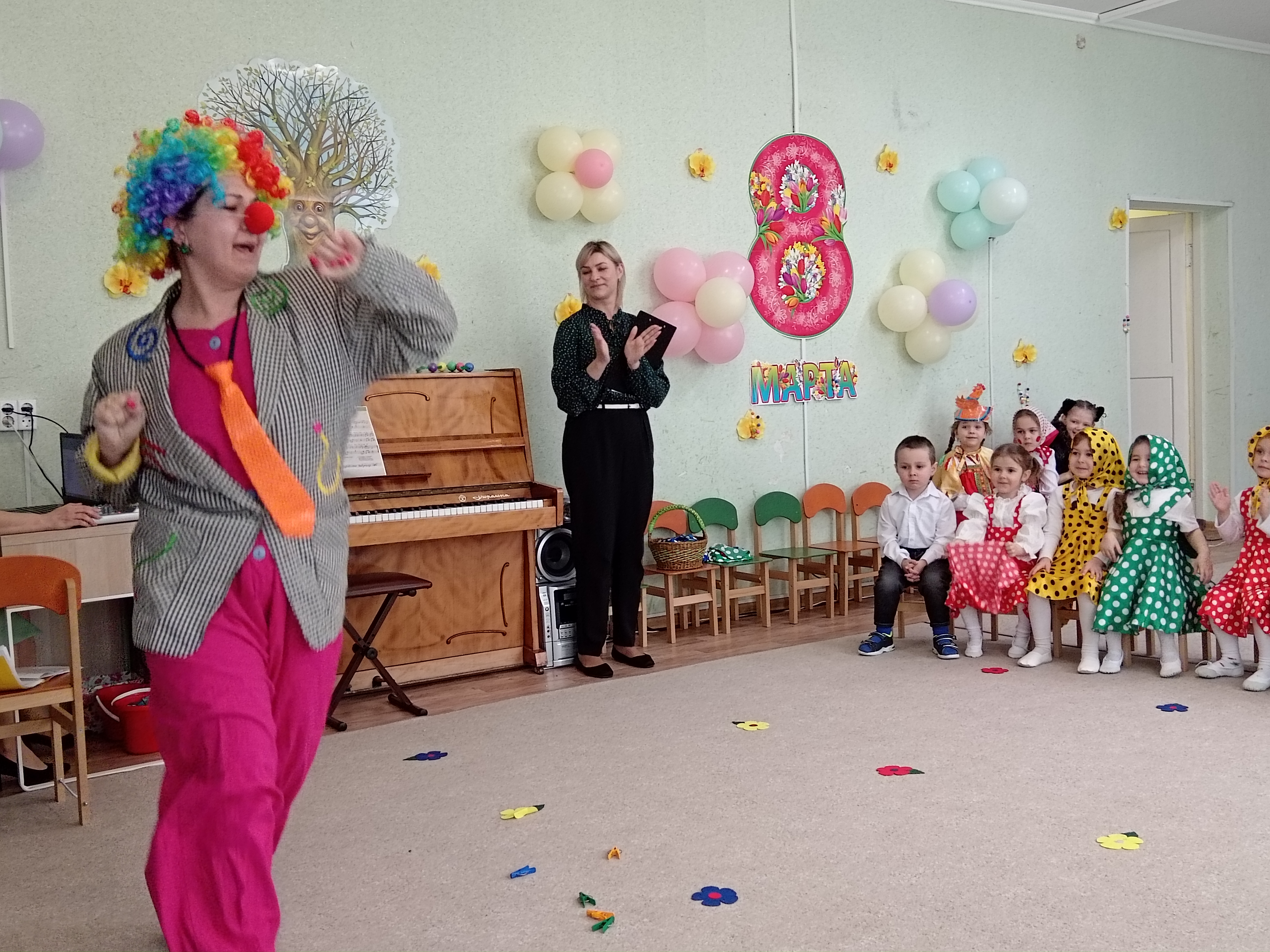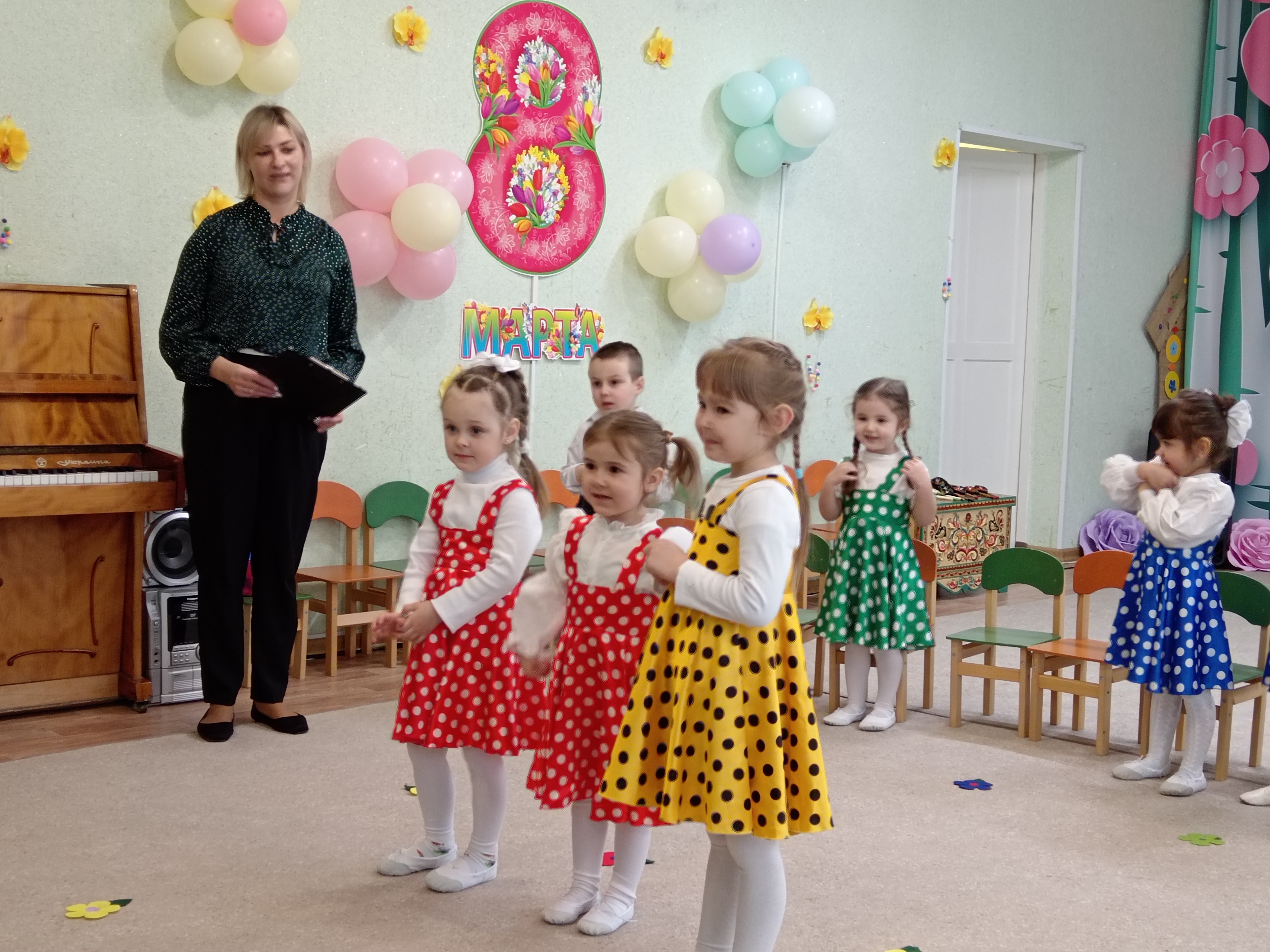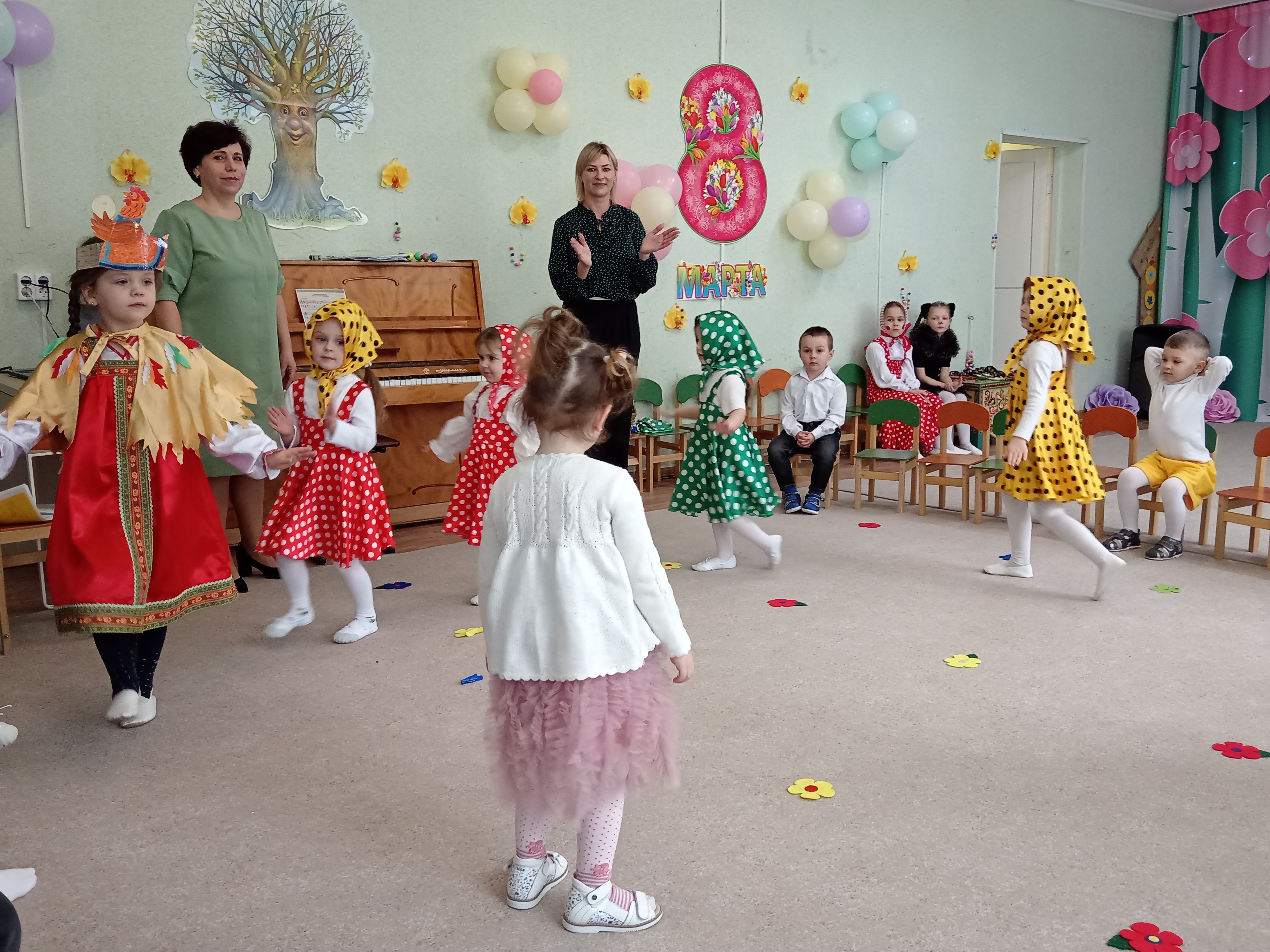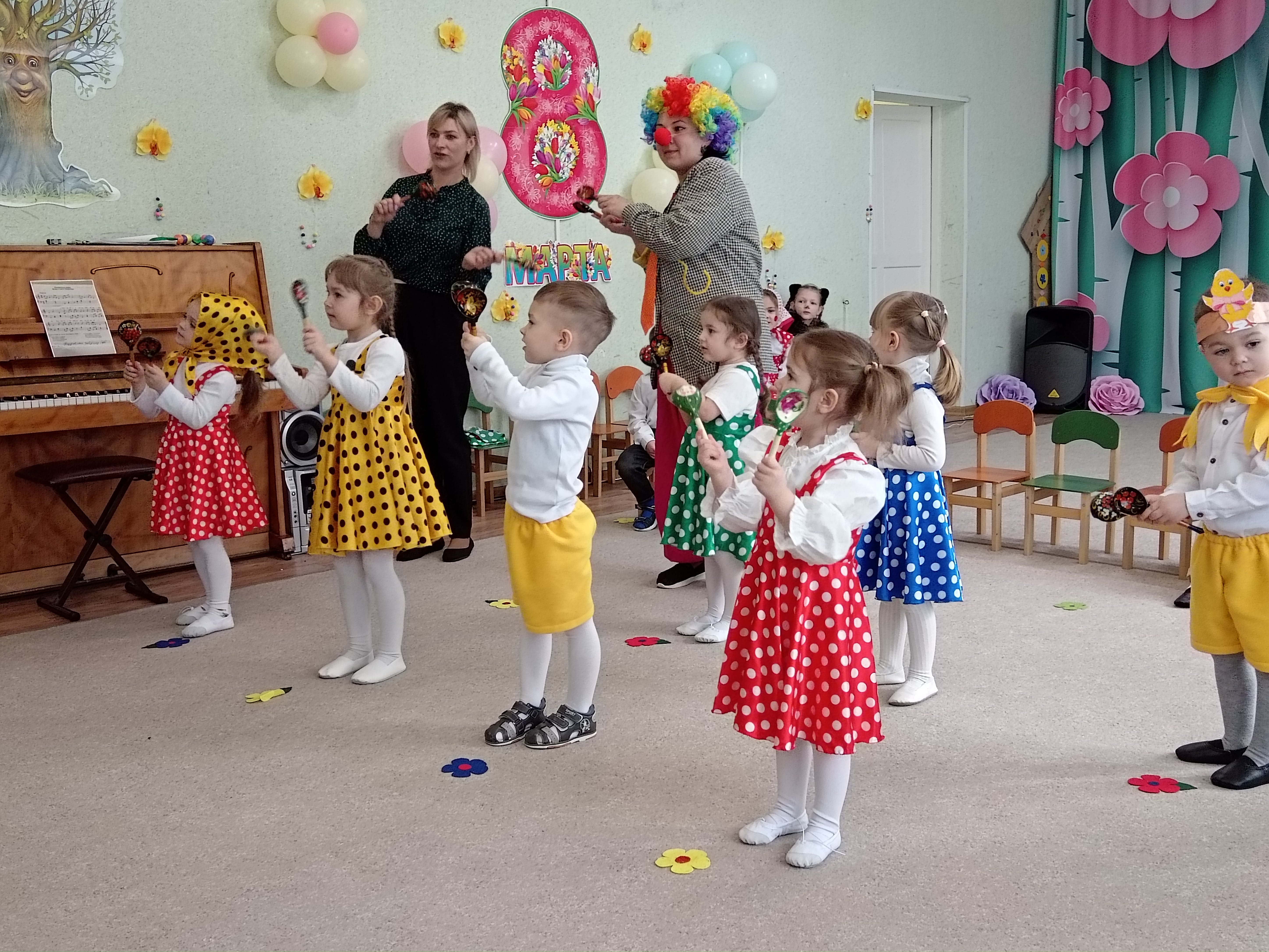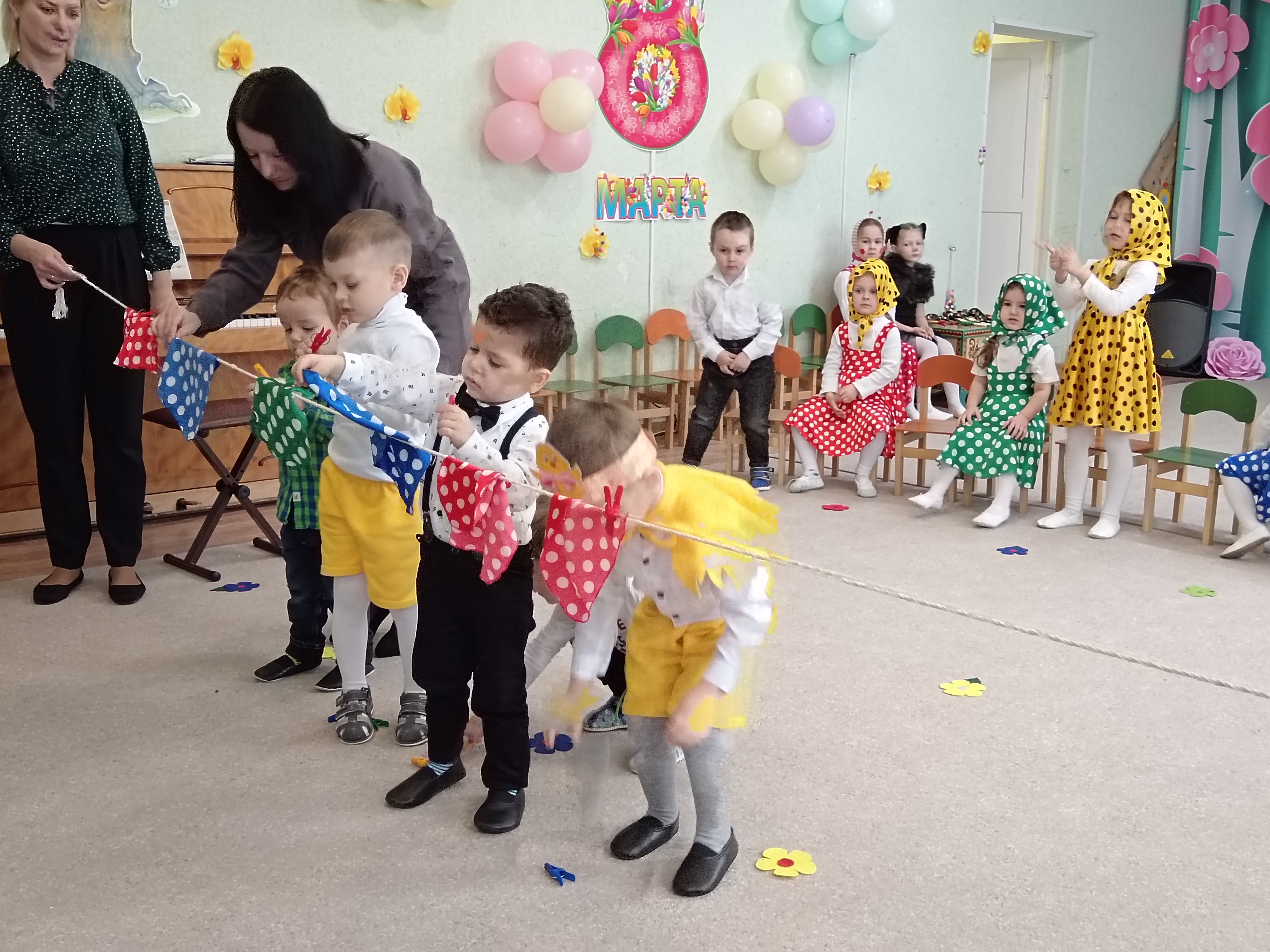 5 марта во второй младшей группе состоялся утренник, посвященный первому весеннему празднику. К ребятишкам приходили разные герои ( Курочка, Кошечка, Матрешка) и помогали детям собирать бусины для мам.