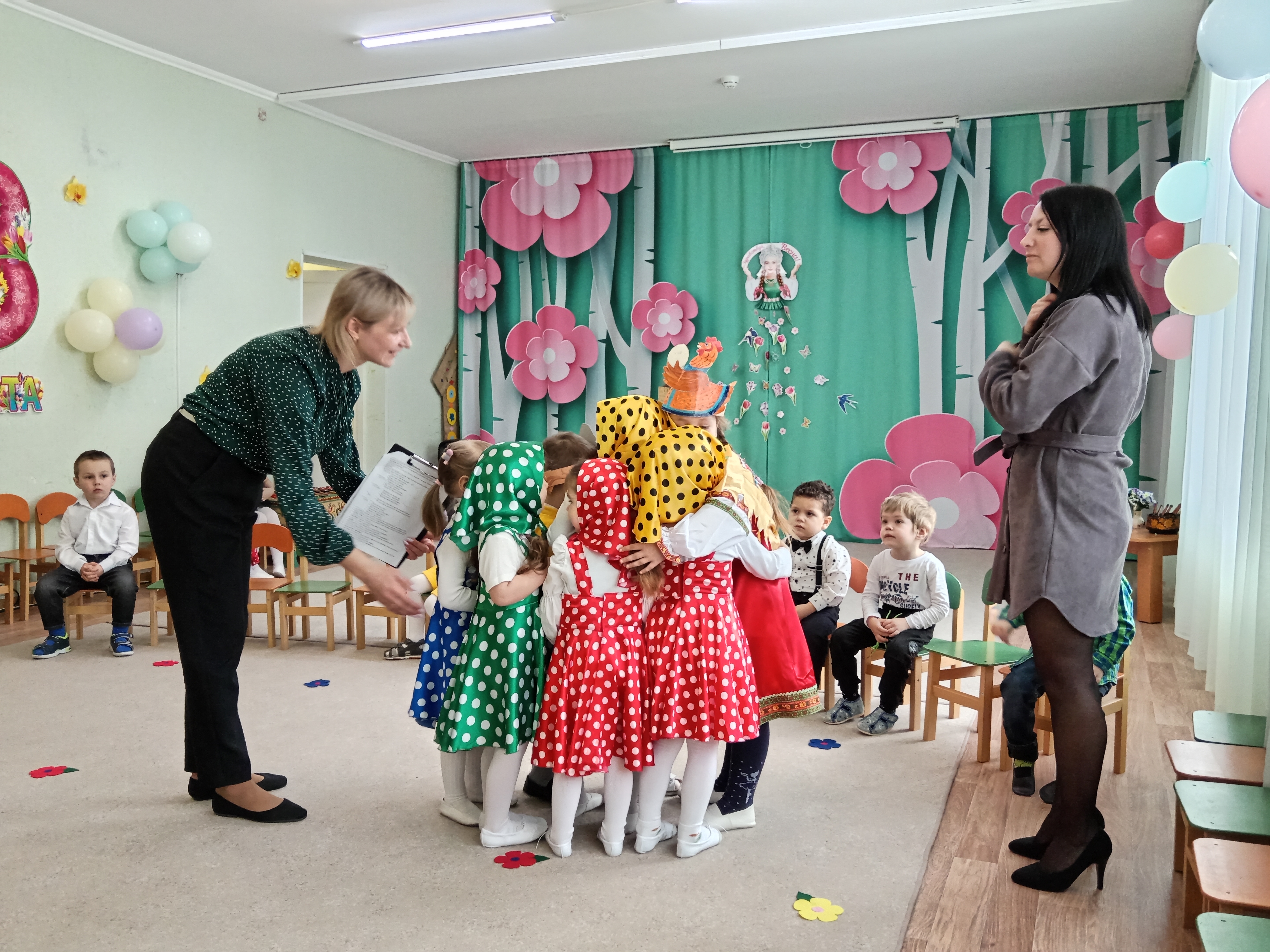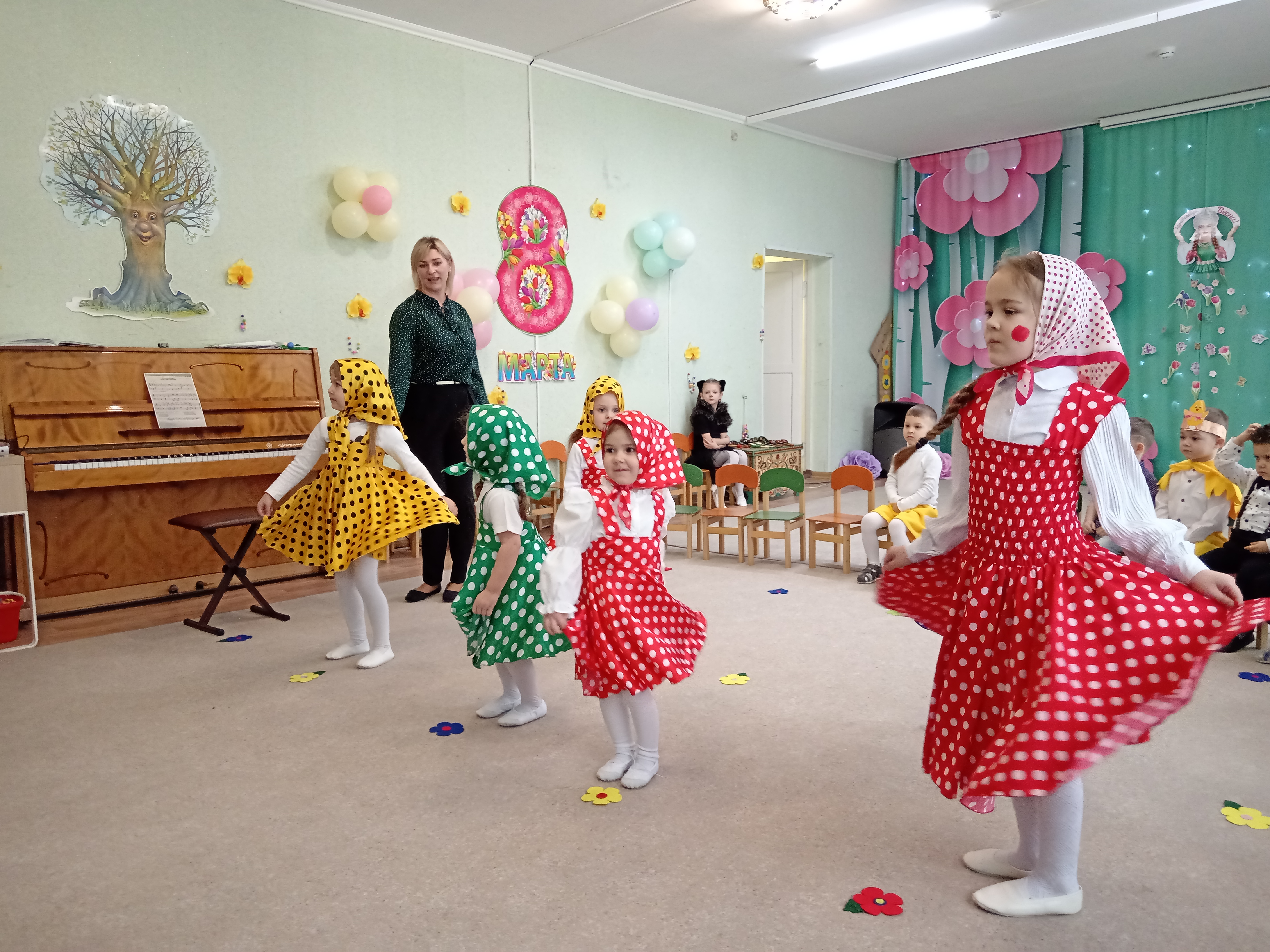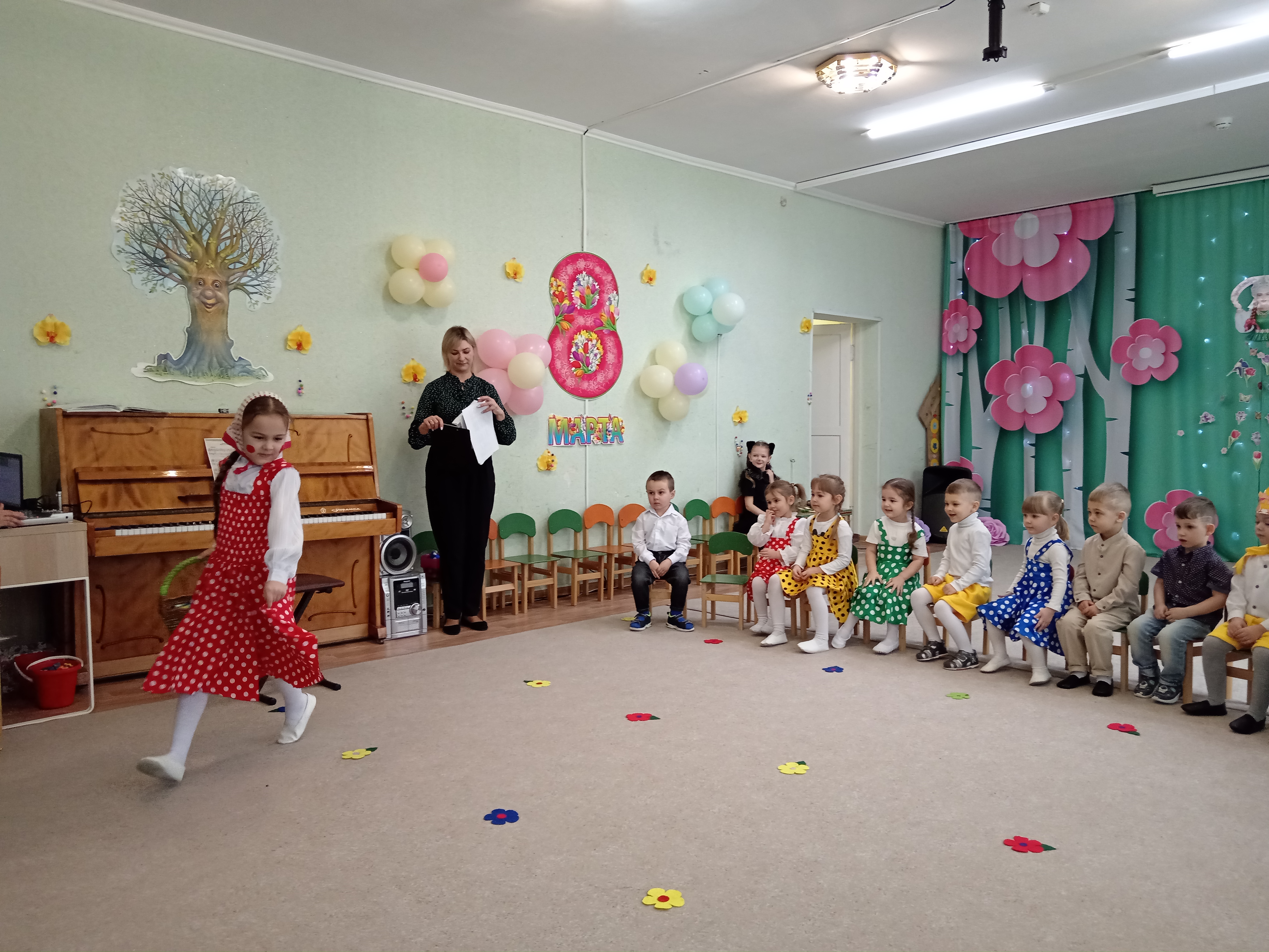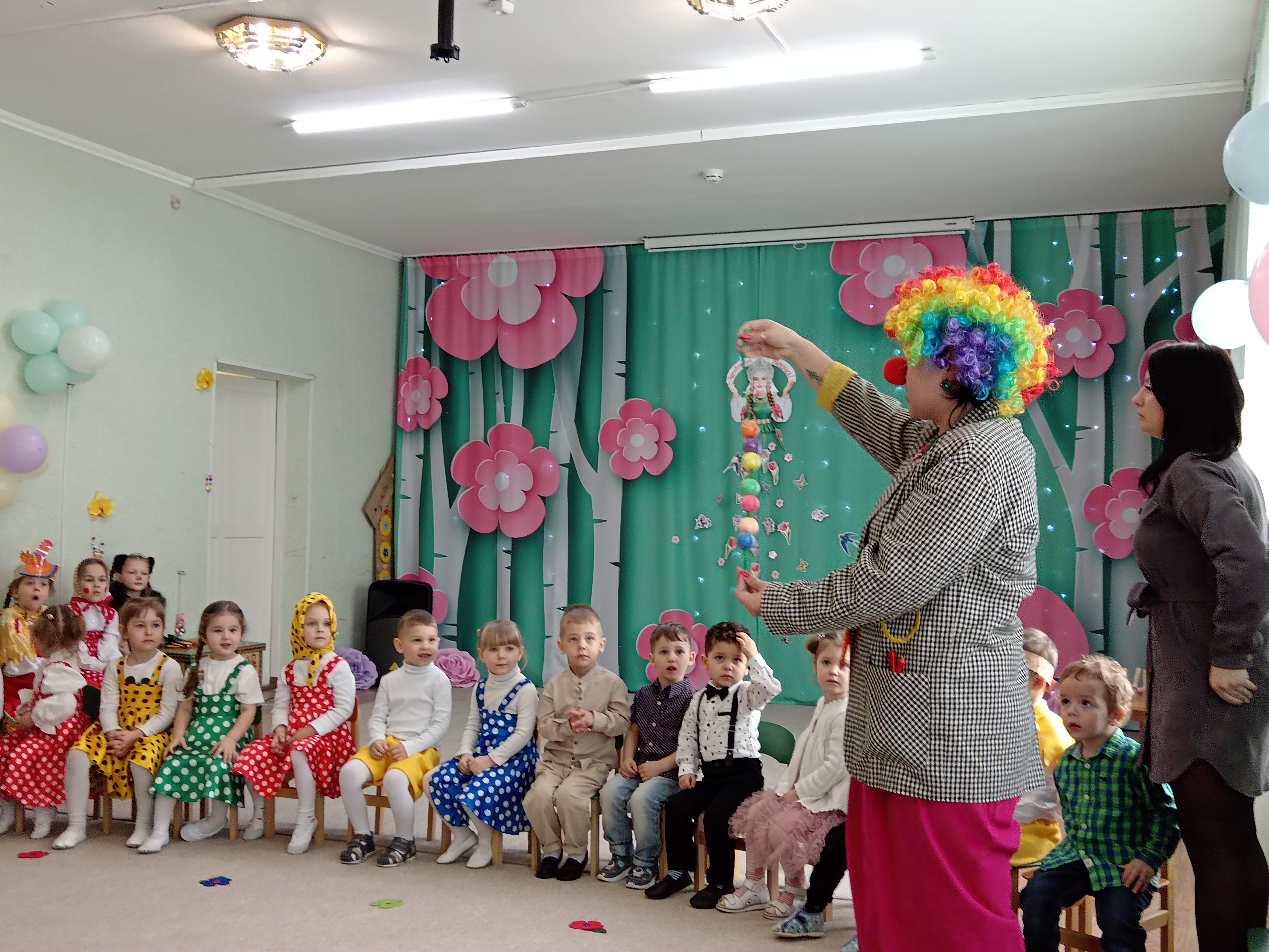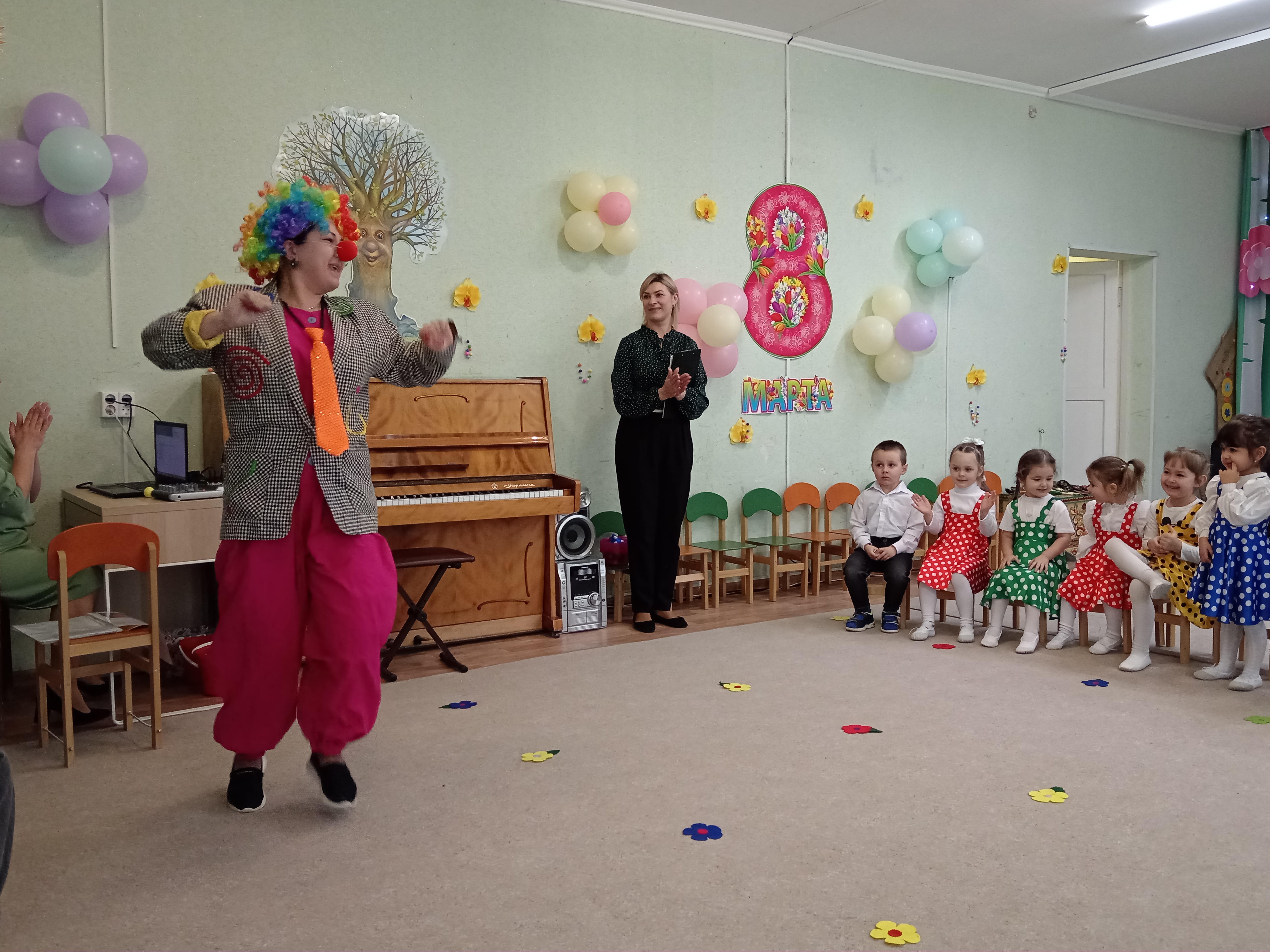 5 марта во второй младшей группе состоялся утренник, посвященный первому весеннему празднику. К ребятишкам приходили разные герои ( Курочка, Кошечка, Матрешка) и помогали детям собирать бусины для мам.